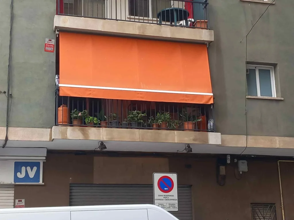 Vamos con el toldo ya fabricado y listo para instalar. En la gran mayoría de casos, dejamos todo operativo el mismo día. Si hay complicaciones, usamos el equipo y las medidas de seguridad necesarias.
